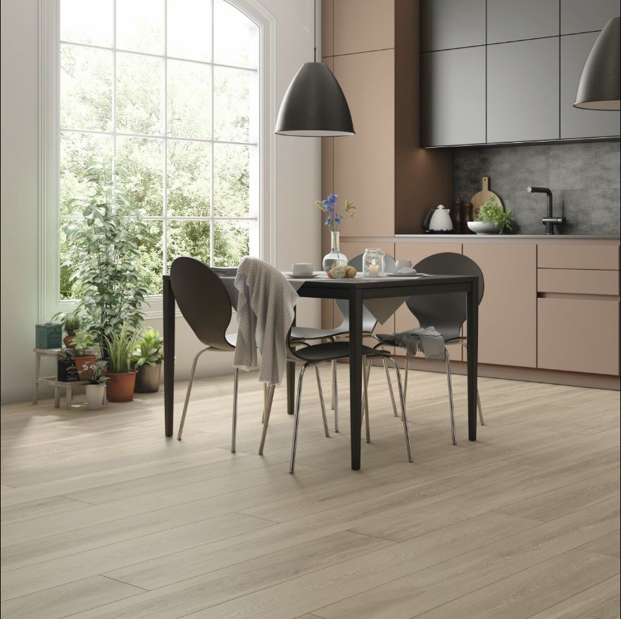 Sérstaklega vandað vatnsvarið harðparket með náttúrlegu útliti, er mun slitsterkara en viðarparket og breytir ekki um lit, helst óbreytt allan líftíman.